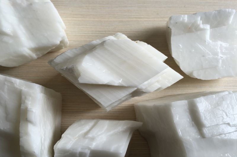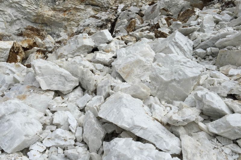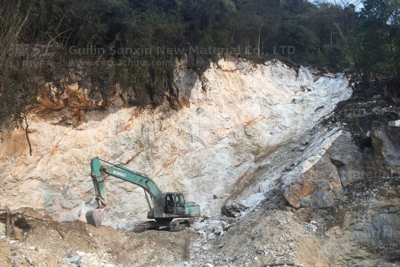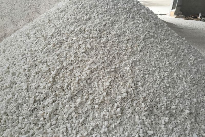 After preliminary screening and jaw broken calcite, white, shiny, angular (high quality large calcite no matter how broken, will always maintain angular shape)